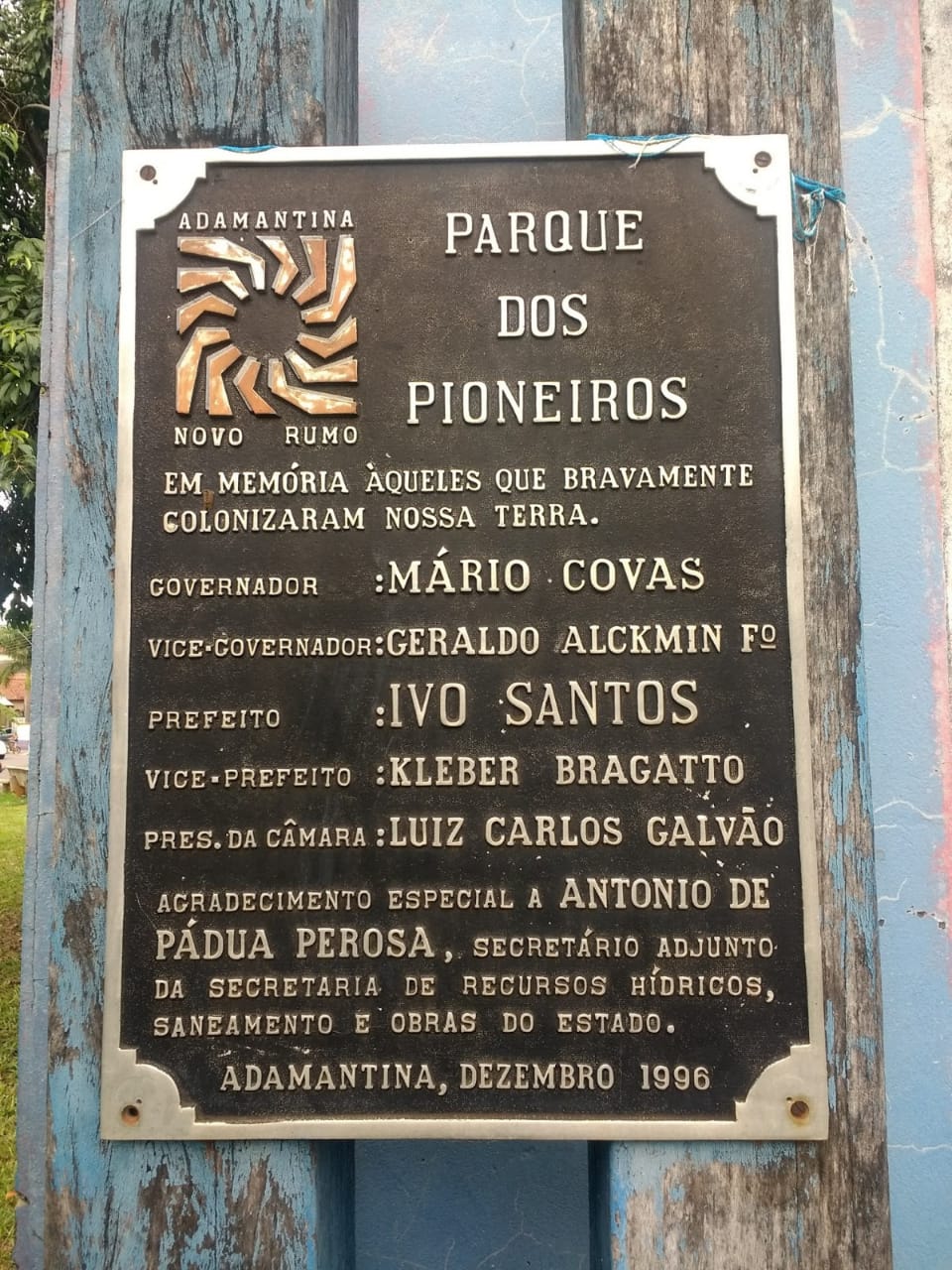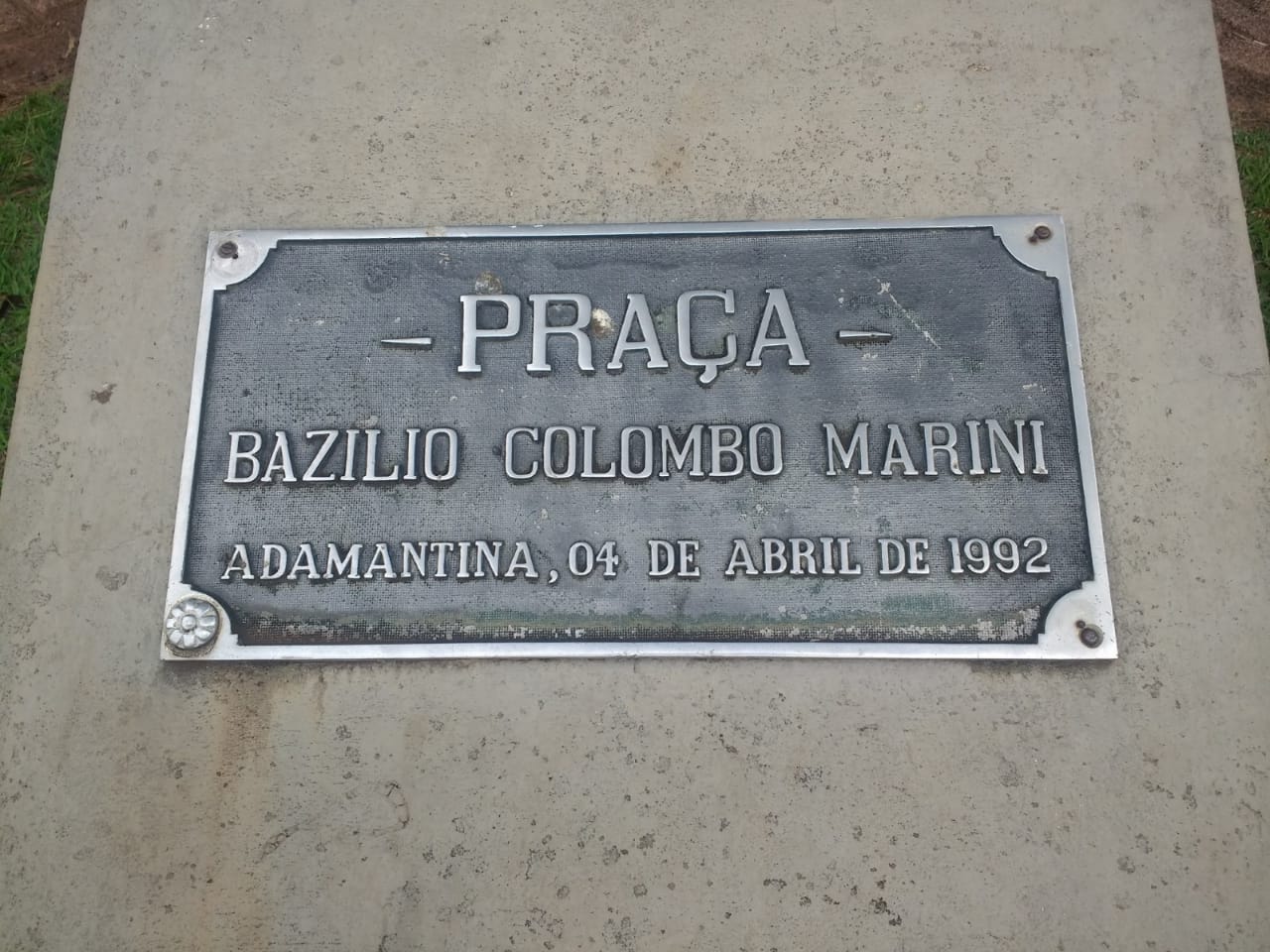 Marco zero de Adamantina, instalado na Praça Élio Micheloni (Foto: Thiago Rafael).