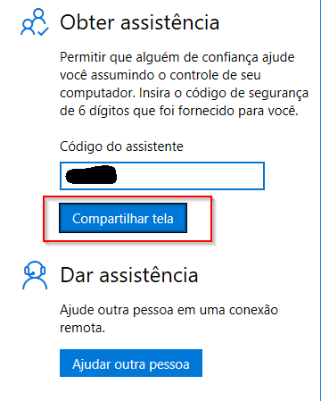 Caso você esteja do lado que está recebendo ajuda, o procedimento é mais simples. Basta digitar o código compartilhado pela outra pessoa e clicar em compartilhar tela: