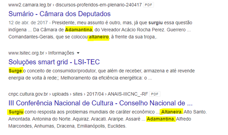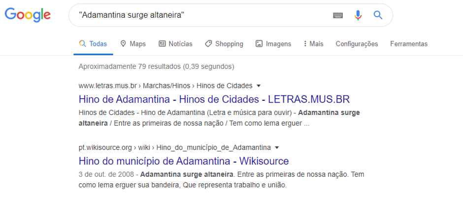 A imagem a seguir mostra alguns resultados após procurar a expressão sem aspas: