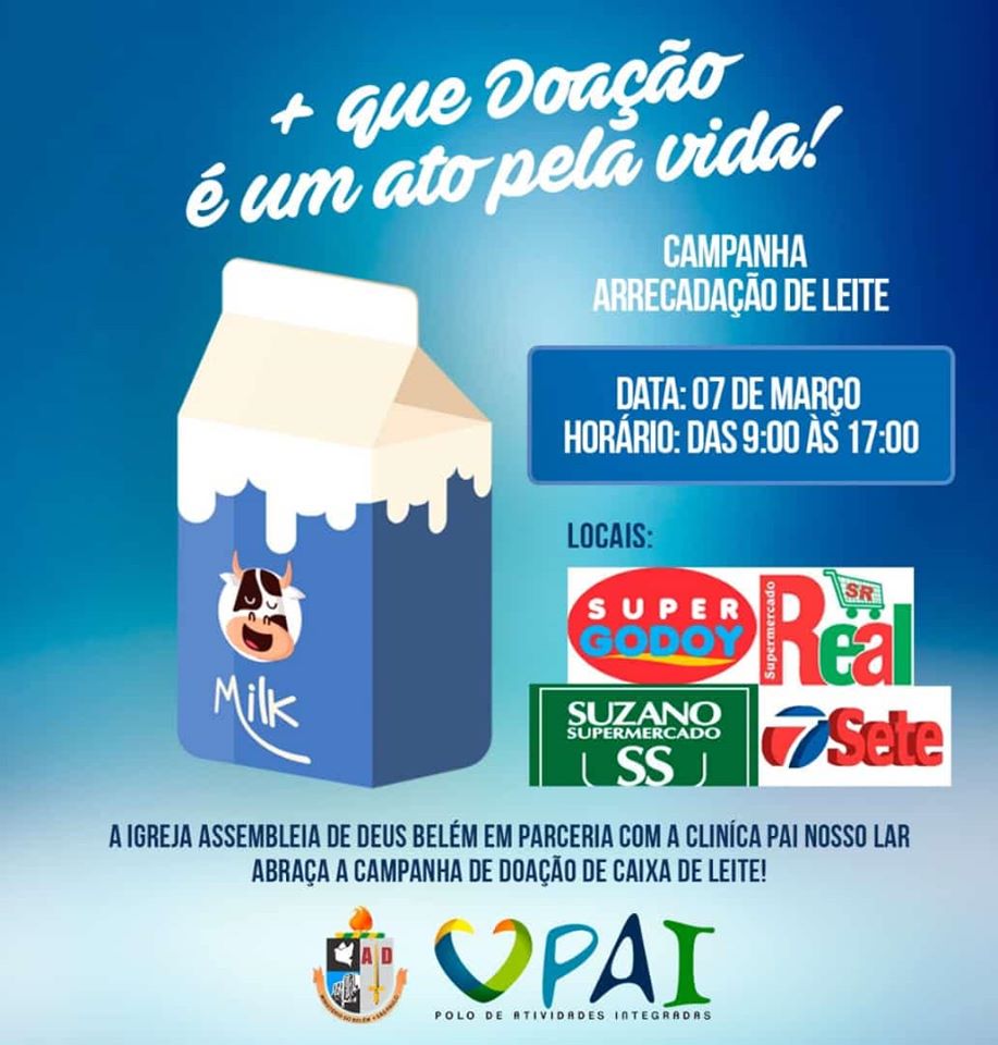 A Igreja Evangélica Assembleia de Deus (Ministério do Belém), de Adamantina, fará neste sábado (7) uma mobilização para arrecadação de leite para a Clínica PAI Nosso Lar.