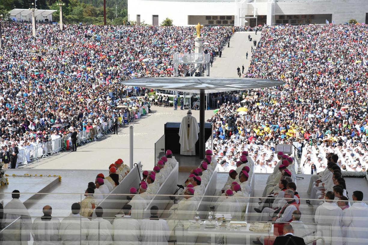 Ele foi demoradamente aplaudido por uma multidão de meio milhão de pessoas, vindas de 55 países e que desde quarta-feira (10) permaneciam no recinto do Santuário, a enorme praça onde estão as basílicas de Nossa Senhora do Rosário, a Santíssima Trindade e a Capela das Aparições, antiga Cova da Iria, onde teriam ocorrido as aparições.