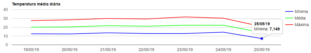 A queda da temperatura foi bastante acentuada desde o anoitecer desta sexta-feira (24). Às 20h os termômetros do CIIAGRO marcavam 14,5ºC, chegando a 7,1º C por volta das 7h da manhã deste sábado, e a partir de então, iniciando elevação. Às 8h da manhã os registros informaram 8,8º C. (Continua após a publicidade...)