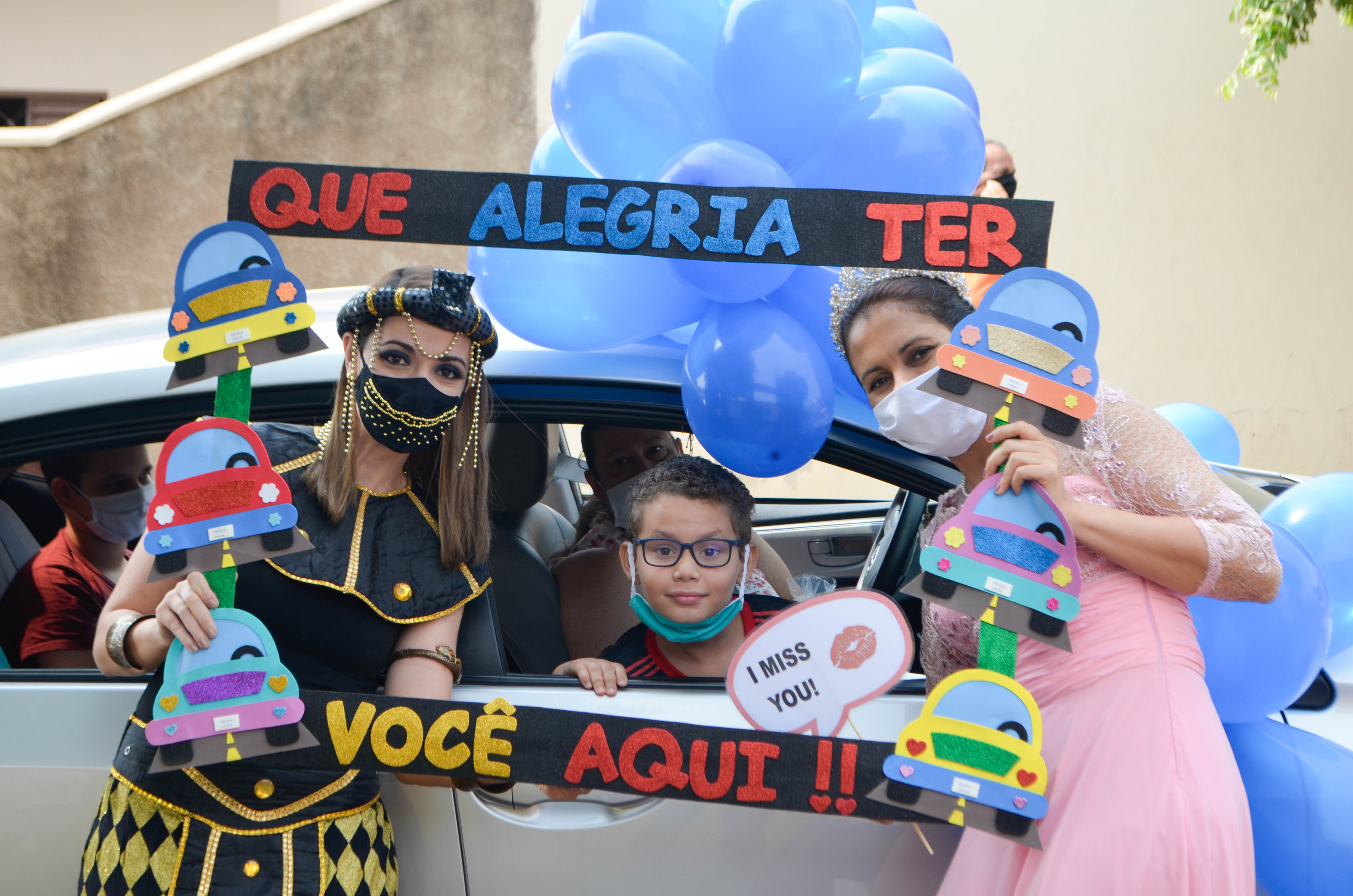 Em frente à Escola, os carros se aproximavam de cada espaço, de acordo com o ano de estudo dos filhos, onde os estudantes eram saudados pelos professores e colaboradores. Cada aluno da escola recebeu brindes e kit com doces, pipoca e algodão-doce. Em muitas situações, os professores também receberam presentes levados pelas crianças.