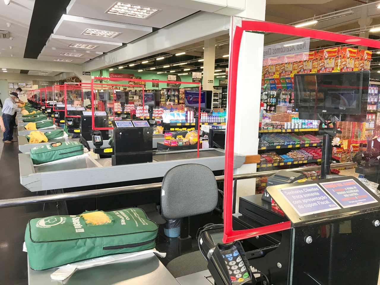A empresa também instalou uma divisória entre os caixas e clientes e aplicou sinalização no piso para demarcar distanciamento, o que amplia as medidas de segurança para colaboradores e o público.