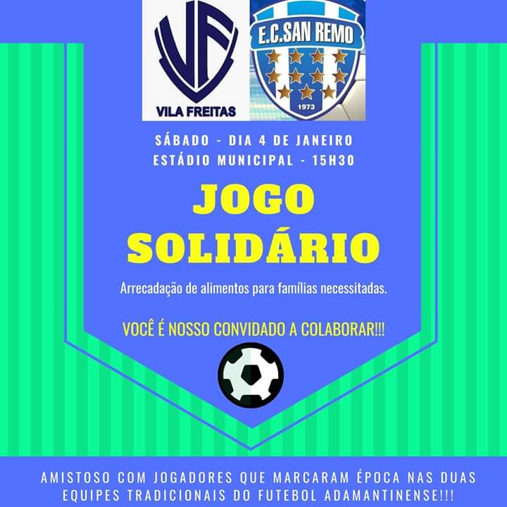 Após 20 anos de amizade – apesar de ao longo deste tempo sempre serem bons adversários dentro de campo –, os times da Vila Freitas FC e do EC San Remo (Jardim Brasil) se unem na tarde deste sábado (4 de janeiro) para fazerem um Jogo Solidário, no Estádio Municipal “Antônio Goulart Marmo”.