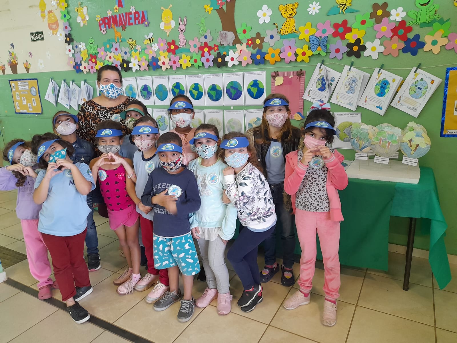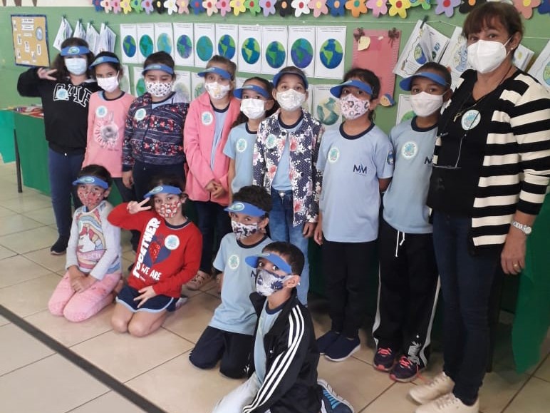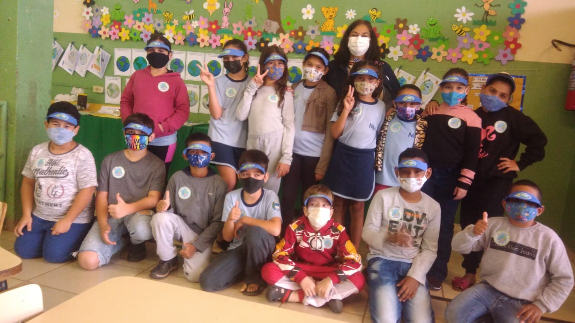 Além disso, os alunos receberam viseiras com mensagens ligadas ao meio ambiente, visando a fixação do conteúdo abordado durante toda a semana.
