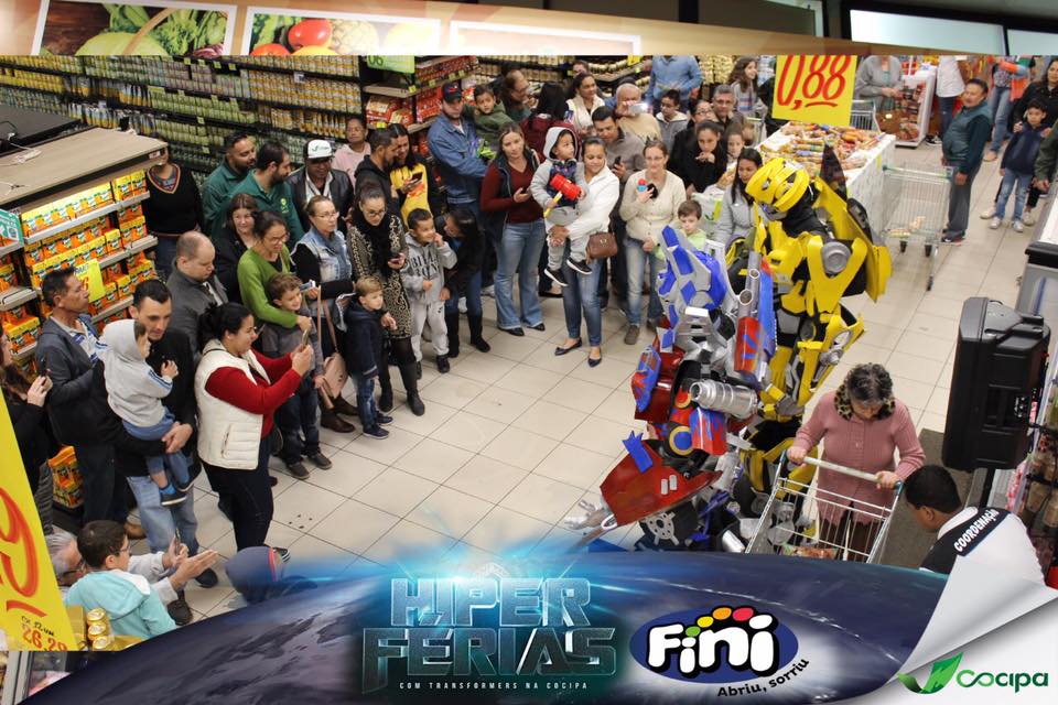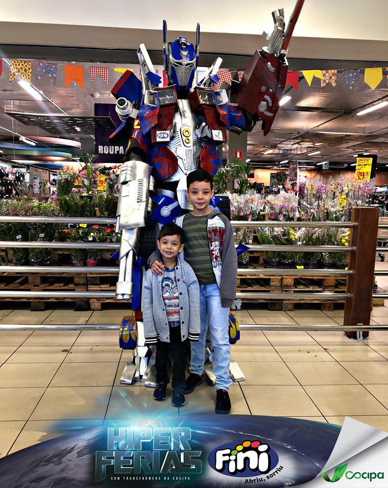 A primeira atividade da Hiper Férias com Hiper Diversão foi realizada no último sábado (6), com os personagens Transformers, super-heróis que encantam crianças e adultos. A iniciativa mobilizou o parceiro “Balas Fini” (Continua após a publicidade...)