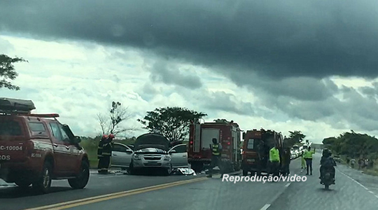 A primeira informação de que seria uma colisão traseira, mas a perícia está no local para apurar o caso. Com o violento impacto, passageiros dos veículos ficaram presos nas ferragens. Chovia muito na hora da colisão.