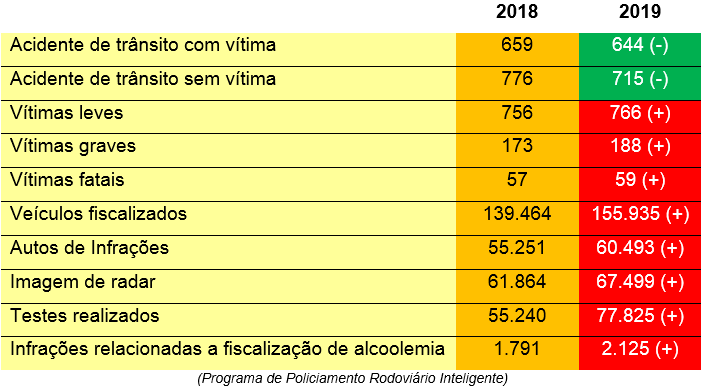 Diante disso, a PM Rodoviária informa ter realizado dezenas de palestras e atividades educativas que atingiram mais de 2.300 pessoas, bem como foram desencadeadas centenas de operações de fiscalização de trânsito no ano de 2019, com o intuito de reduzir o desrespeito às leis de trânsito e salvar vidas.