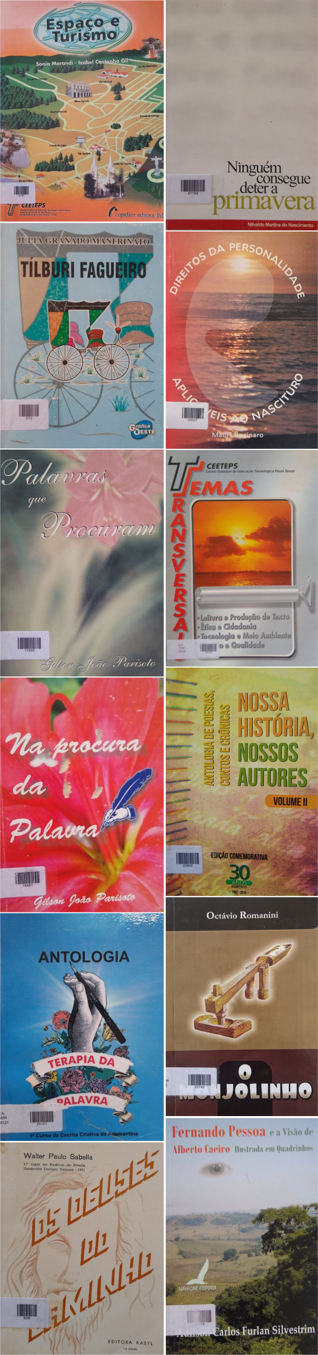 Se você nunca leu ou sequer viu algumas das obras dos escritores supracitados, a biblioteca local dispõe de uma sessão específica em seu acervo para tais obras. Vale a pena conferir e se inteirar do já fora produzido por aqui. Inclusive de algumas obras produzidas nos cursos de Escrita Criativa, ministrado pela escritora Vanessa Batista.