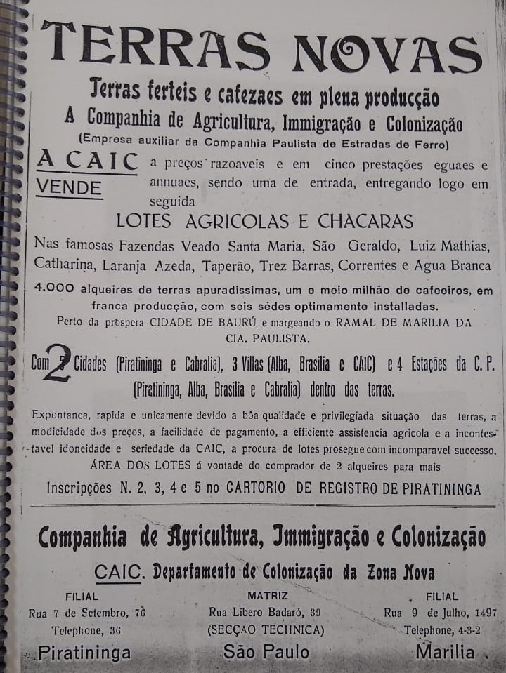 - Em 20 de outubro de 1939, a Cia Industrial Citrícola Aparecida (CICA[1]) comprou da Boston Cattle Company Ltda, uma gleba de terras, com área total de 1.792.320 metros quadrados (equivalente a 74,62 alqueires).