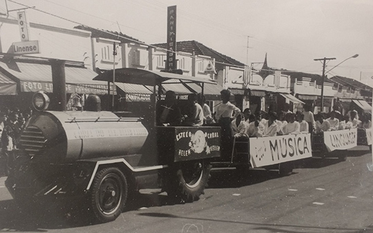 Desfile cívico, na altura da Rua Deputado Salles Filho, na década de 60 (Acervo: Arquivo Histórico Municipal).