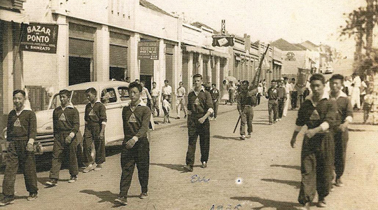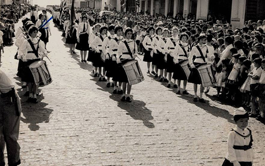 Desfile Cívico com alunos do Colégio Ateneu Bento da Silva (Acervo: Arquivo Histórico Municipal).