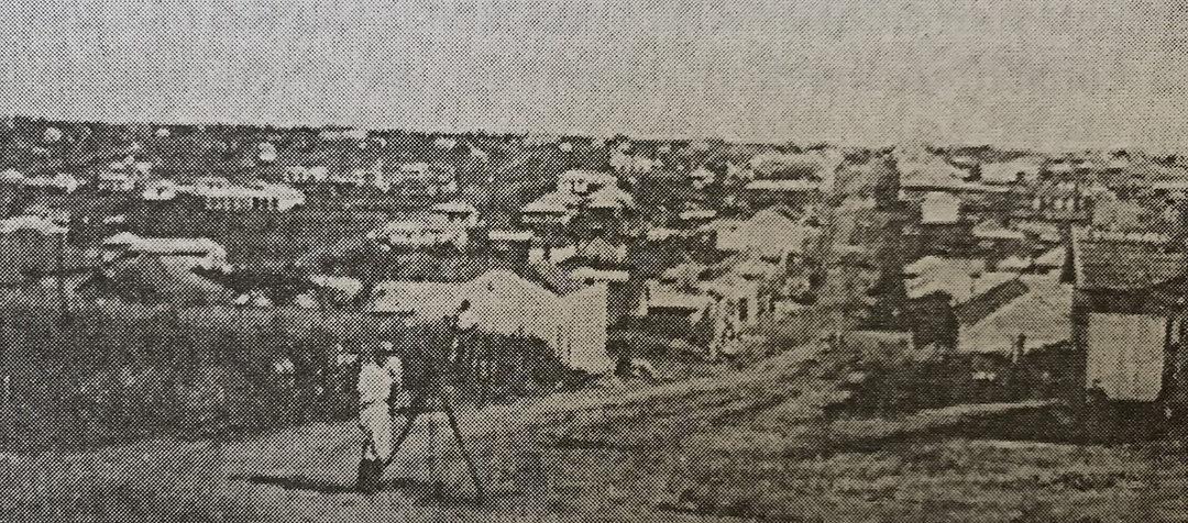 Nivelamento de ruas para fixação de postes. Energia eléterica chegou a Adamantina no fnal dos anos 40 (Livro Jubileu de Ouro de Adamantina/Cândido Jorge de Lima)