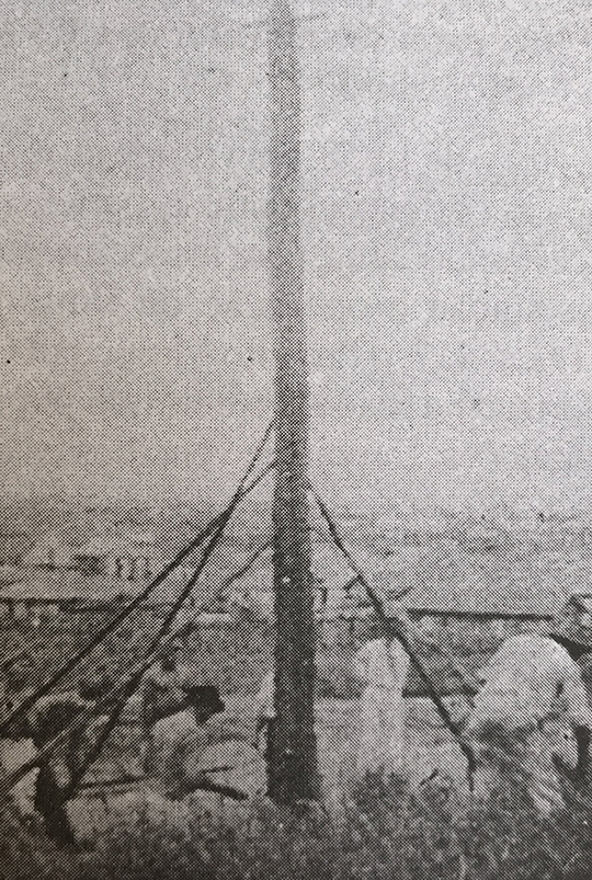 Fixação do primeiro poste de energia elétrica, em Adamantina, no ano de 1948 (Livro Jubileu de Ouro de Adamantina/Cândido Jorge de Lima)