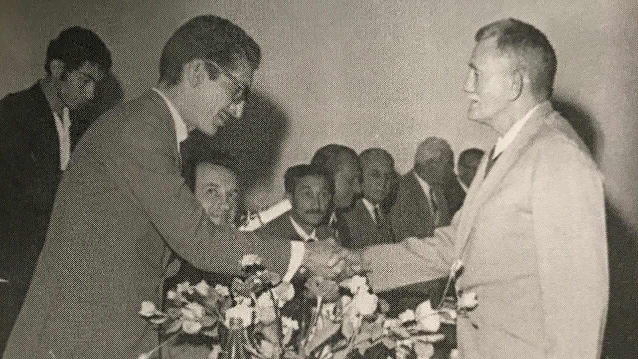 Audione Ferreira Ferro sendo homenageado em 1969 pela Câmara Municipal (Reprodução: Livro Reviver Adamantina/João Carlos Rodrigues).