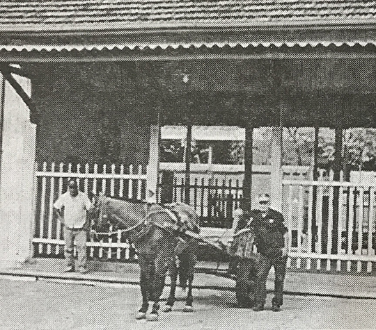Condutor de carroça aguardava a chegada do trem para retirar os malotes de correspondências e jornias (Livro Jubileu de Ouro de Adamantina/Cândido Jorge de Lima).