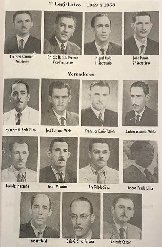 1ª legislatura da Câmara Municipal de Adamantina (Reprodução/Livro Jubileu de Ouro/Cândido Jorge de Lima).