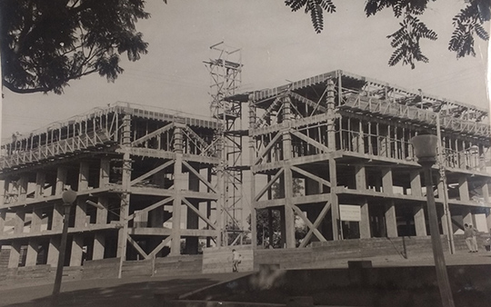 Na sequência de três fotos, construção do prédio que passou a abrigar a Câmara Municipal, na década de 70 (Arquivo Histório Municipal).