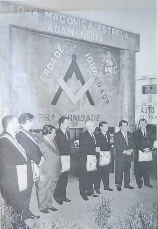 Inauguração do moumento comemorativo aos 50 anos da Loja Maçônica Estrela, em 1999 (Arquivo/Diário do Oeste).