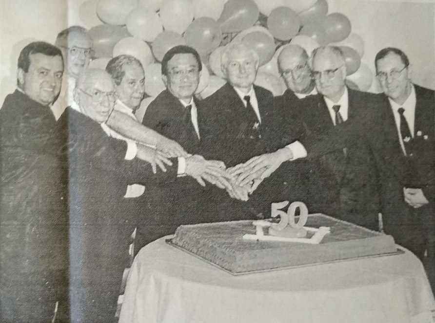 Comemoração dos 50 anos, com ex-Veneráveis da Loja Maçônica Estrela, em 1999 (Arquivo/Diário do Oeste).