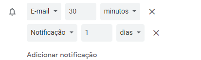 Não adianta nada cadastrar seus eventos e depois se esquecer deles, não é? Por causa disso, o Google Agenda oferece vários tipos de lembretes. Você pode escolher ser lembrado por e-mail ou notificação, podendo criar quantos lembretes quiser: