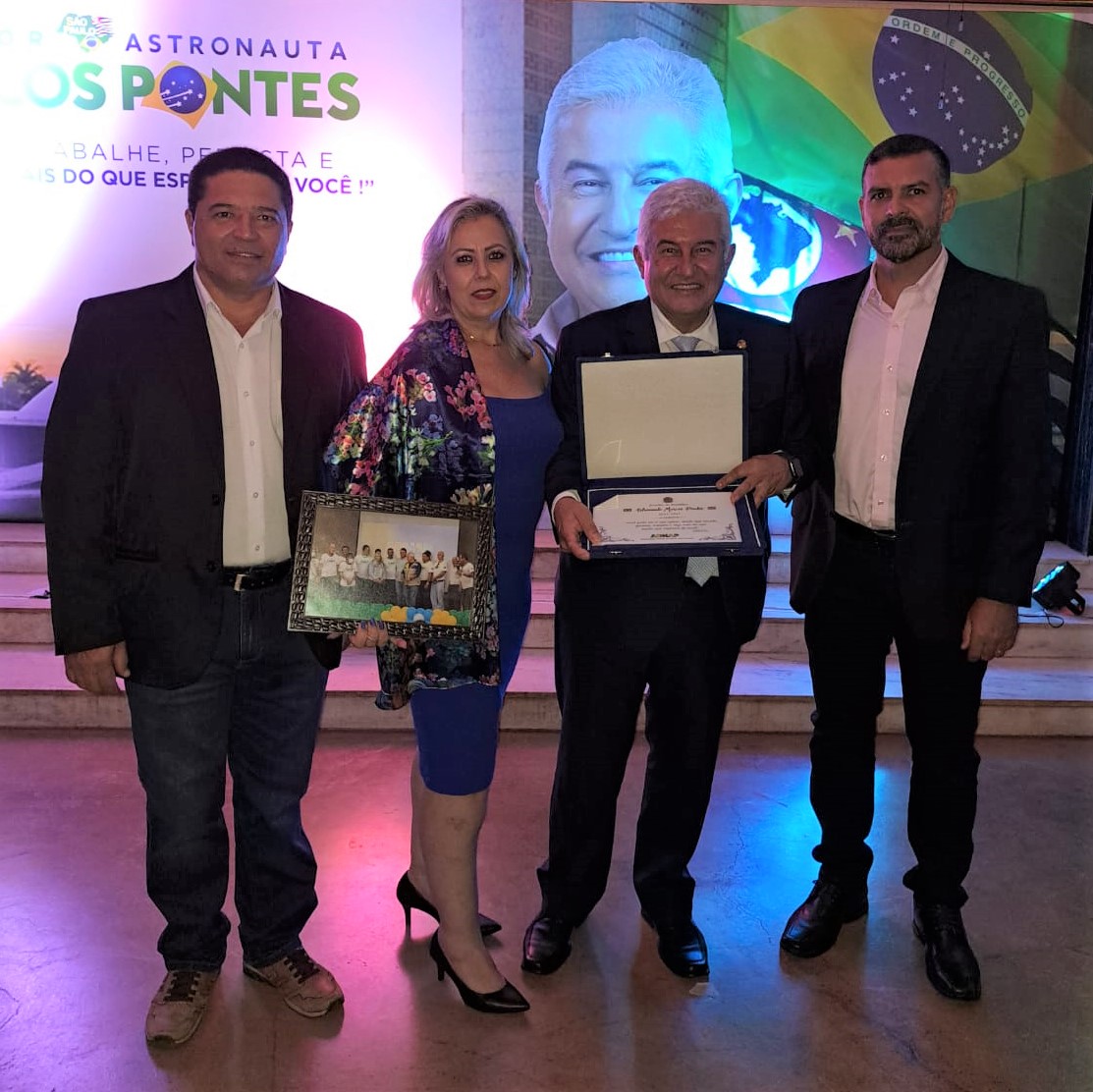 Wilson Alcântara, Vilma Guelsi e Marcos Lima são recebidos pelo senador Marcos Pontes em Brasília.