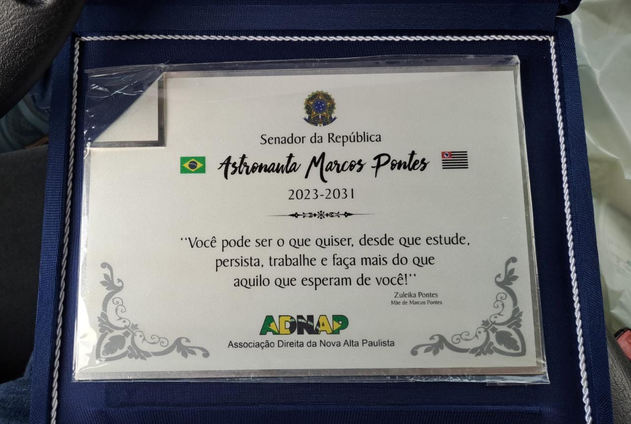 Pelas mãos dos membros da ADNAP, o astronauta recebeu uma foto como recordação de um dos momentos em que esteve em Adamantina, em um encontro realizado no campus II do Centro Universitário UniFAI, e ainda uma placa com os dizeres “Você pode ser o que quiser, desde que estude, persista, trabalhe e faça mais do que aquilo que esperam de você”. A frase foi dita pela mãe dele, Zuleika Pontes, quando da sua adolescência, no momento em que se preparava para prestar o processo de seleção para ingresso na Academia da Força Aérea Brasileira, onde foi admitido.