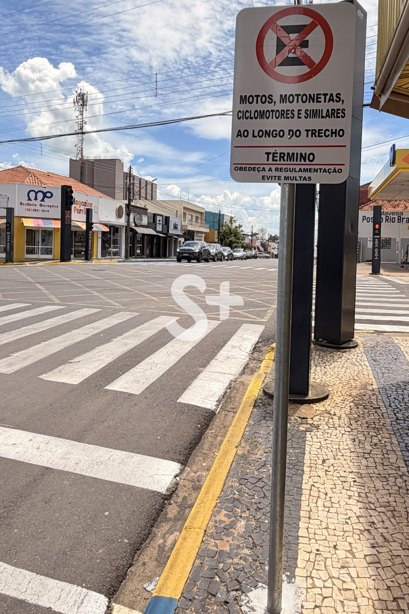 O trânsito na área central de Adamantina está recebendo novas placas regulamentares que restringem a parada e o estacionamento de motos, motonetas, ciclomotores e veículos similares fora dos espaços reservados. A sinalização foi identificada pelo Siga Mais em diferentes pontos da Avenida Rio Branco e vias próximas, principal perímetro comercial da cidade.