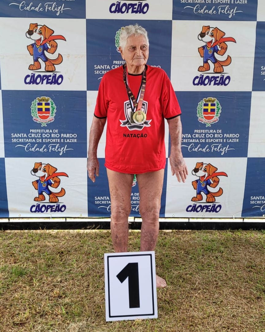 Professor Paulista foi ouro na natação (Cedida/PMA).