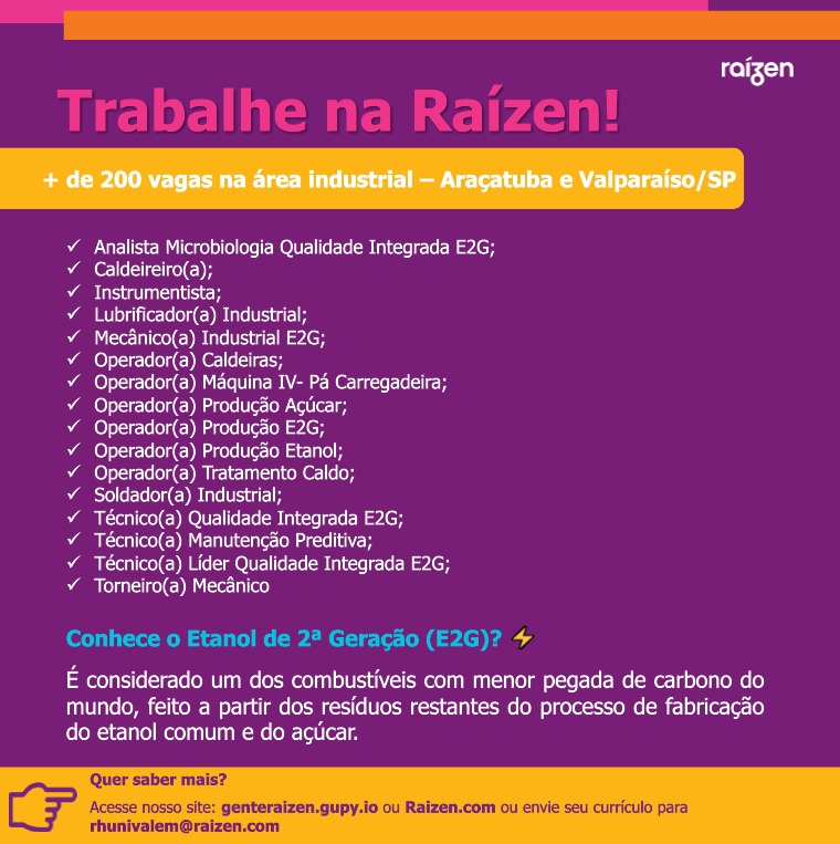 Com mais de 46 mil colaboradores e 15 mil parceiros de negócios espalhados pelo país, a Raízen, que é protagonista na transição energética, busca promover um ambiente de trabalho inovador, ético, inclusivo, seguro, sustentável e que respeita as pessoas e suas individualidades, para isso, busca estes valores e compromissos nos profissionais que integrarão seus times.
