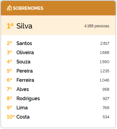 Sobrenomes mais frequentes
