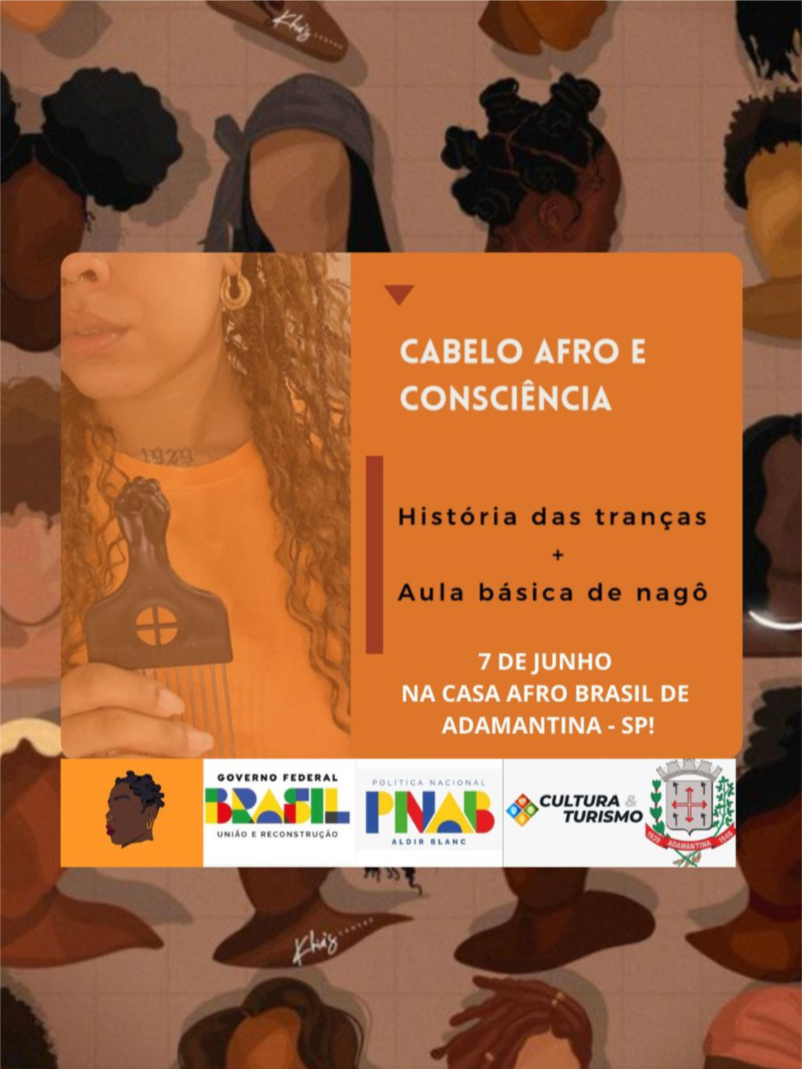 Sábado (7), a partir das 9h, a Casa Afro recebe a oficina “Cabelo Afro e Consciência”, ministrada por Mabi Fernandes Bonfadini. A atividade também integra o calendário de programações alusiva aos 76 anos de Adamantina.
