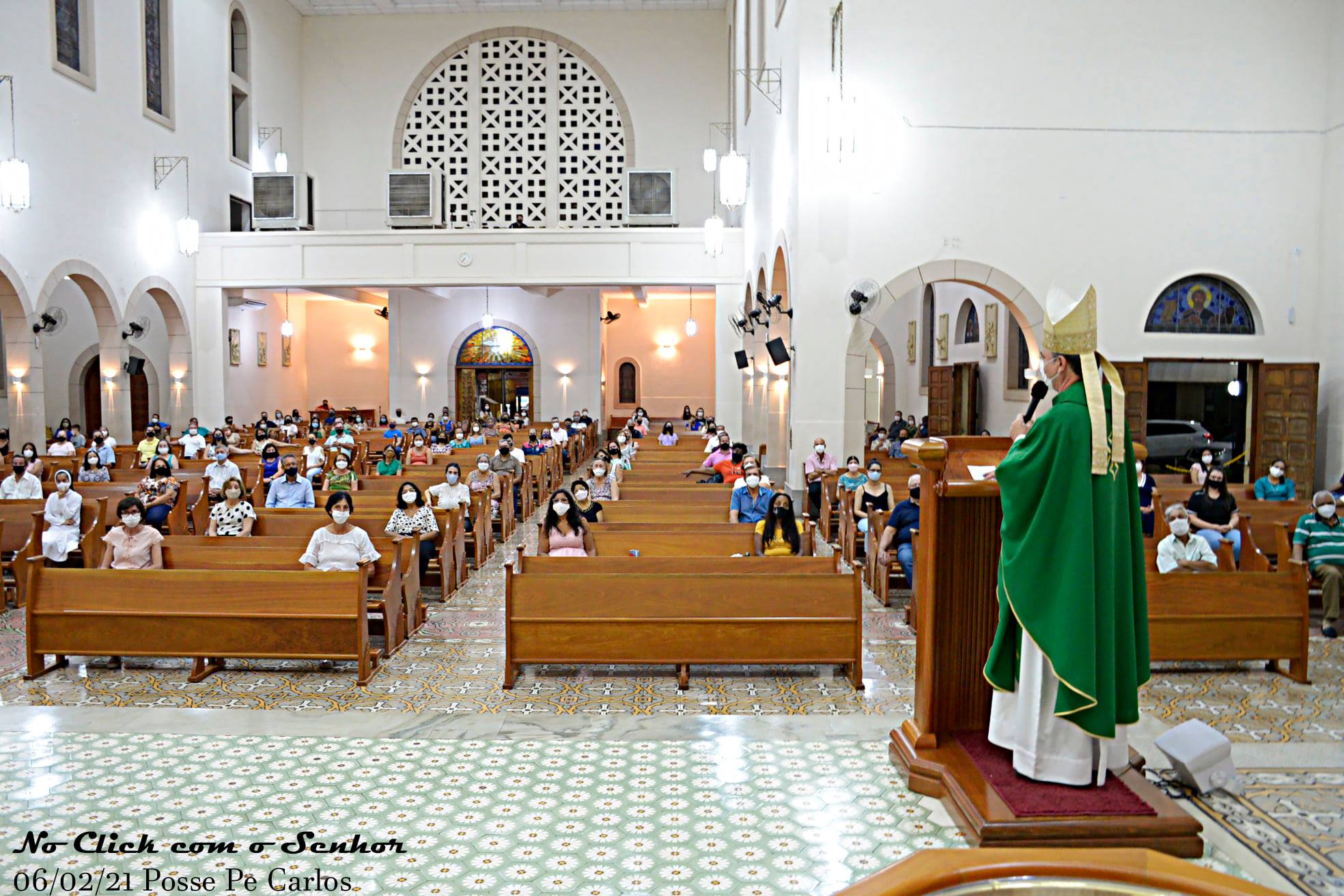 A celebração seguiu os protocolos sanitários para Covid-19, com ocupação reduzida dos assentos e distanciamento social. Foi realizado todo o rito religioso previsto para a solenidade e houve a entrega simbólica das chaves da Paróquia, pelo bispo, ao novo pároco.