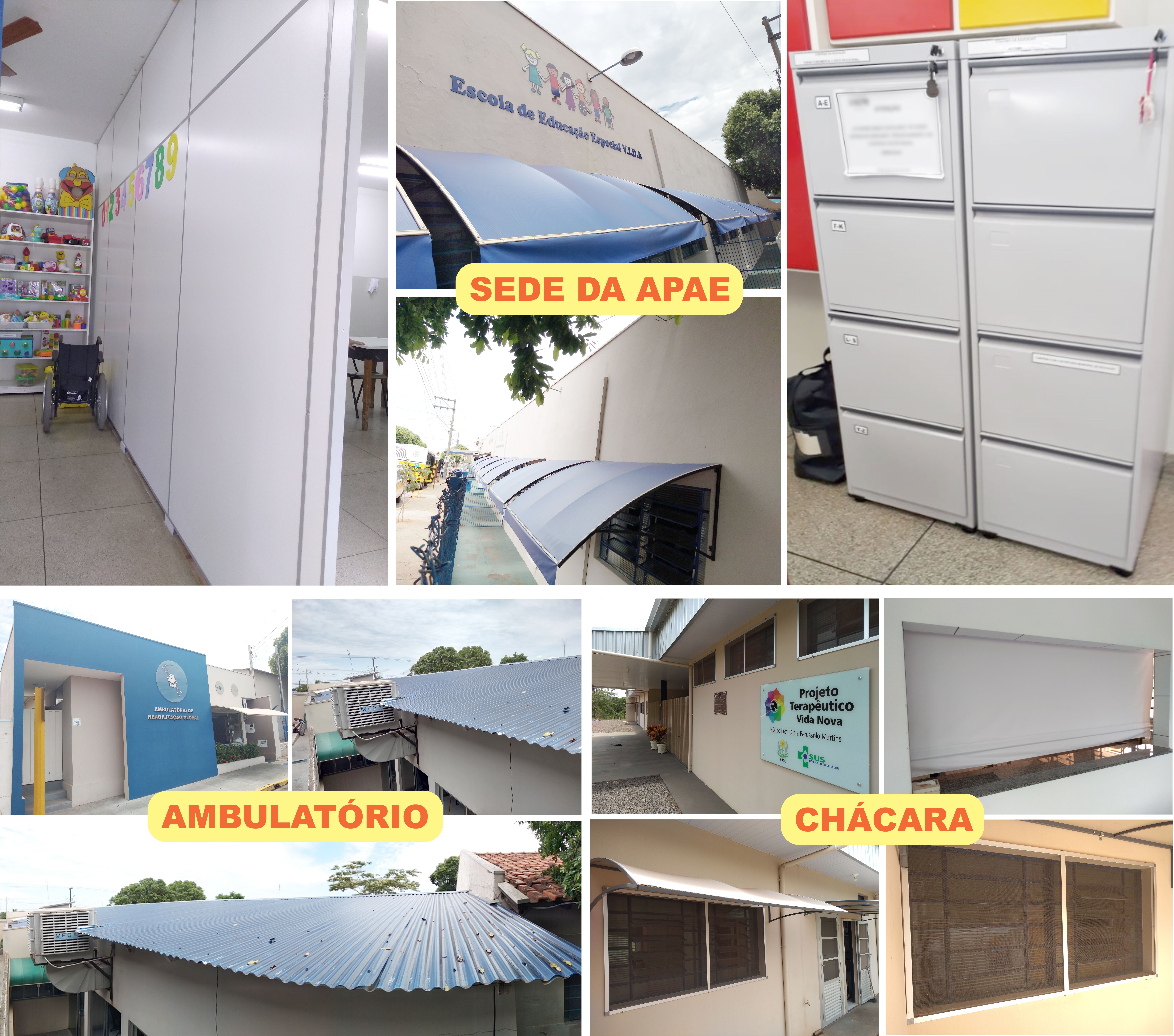 Já a Chácara da APAE, localizada na zona rural, onde funciona o Projeto Terapêutico Vida Nova, também recebeu a instalação novos toldos. Foram colocados ainda, telas mosquiteiras nas janelas da cozinha, evitando que moscas entrem no local, garantindo melhores condições na preparação das refeições para os alunos. (Continua após a publicidade...)