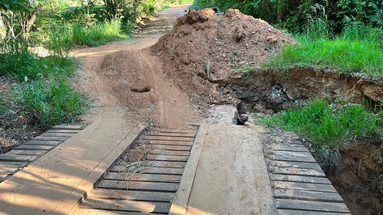 No Córrego Tocantins o local estava sem passagem desde fevereiro de 2022, quando a estrutura foi levada em meio a um temporal, oportunidade em que o volume de água do córrego subiu e destruiu a ponte de madeira. O trecho ficou por dois anos e nove meses sem passagem.