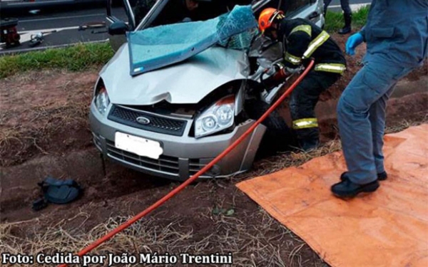 O Corpo de Bombeiros foi acionado para fazer o resgate dos ocupantes do Fiesta, sendo que duas das vítimas do carro ficaram presas às ferragens do veículo.