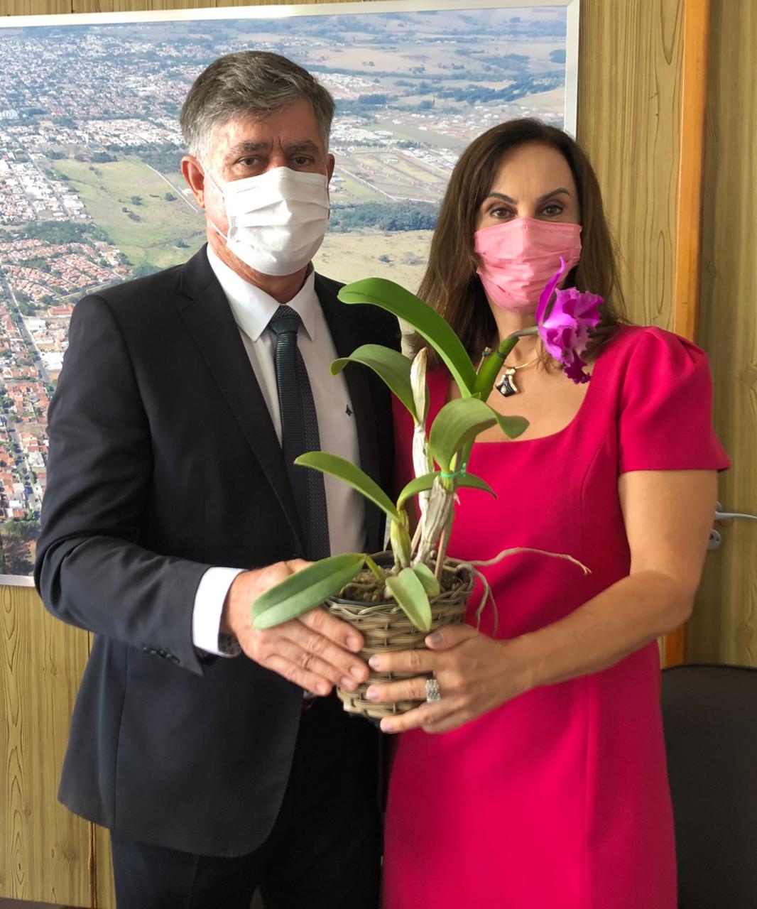 Junto com a nova vice-prefeita Dinha Gil, Márcio despediu-se da então vice-prefeita Ana Maria Romanini Micheloni. Ela foi homenageada com flores. A nova vice-prefeita também recebeu flores.