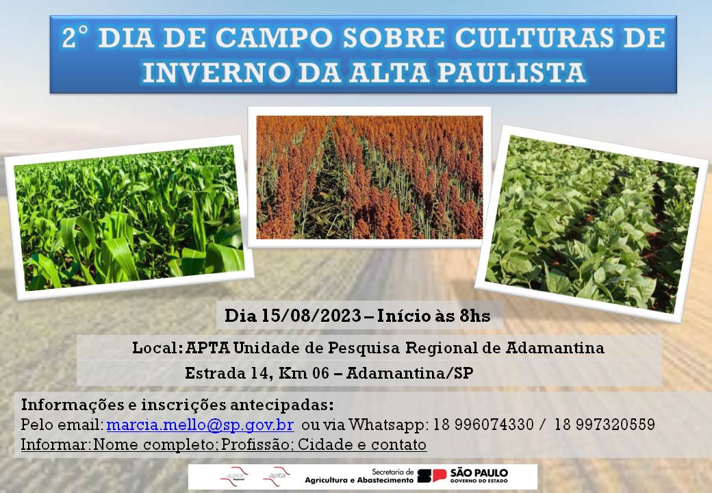 A APTA – Agência Paulista de Tecnologias do Agronegócio, por meio de sua unidade regional em Adamantina, realiza no dia 15 deste mês o 2º Dia de Campo Sobre Culturas de Inverno da Alta Paulista.