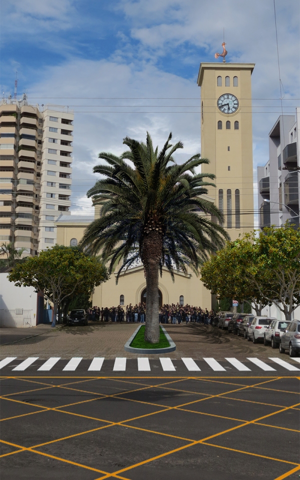 Em frente à Igreja Matriz de Santo Antônio foi projetado um canteiro central com palmeiras de grande porte (Phoenix Canariensis) que direcionam o olhar para à Igreja e também demarcam a volumetria vertical da torre da Matriz.