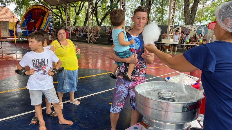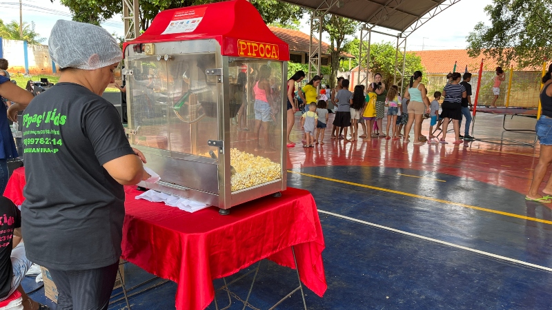 Programação teve brinquedos infláveis, pipoca, algodão doce, cachorro-quente e refrigerante.