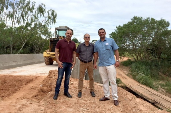 Por meio da Indicação Nº 031/17, apresentada na primeira sessão ordinária deste ano, em 6 de fevereiro, os vereadores Aguinaldo Galvão, Eder Ruete e Acacio Rocha cobraram empenho da Prefeitura para realizar o aterro na ponte. Eles estiveram pelo local na tarde de ontem e conferiram que os trabalhos estão sendo executados e a obra está na reta final, prestes a servir a população que se utiliza desta estrada rural.