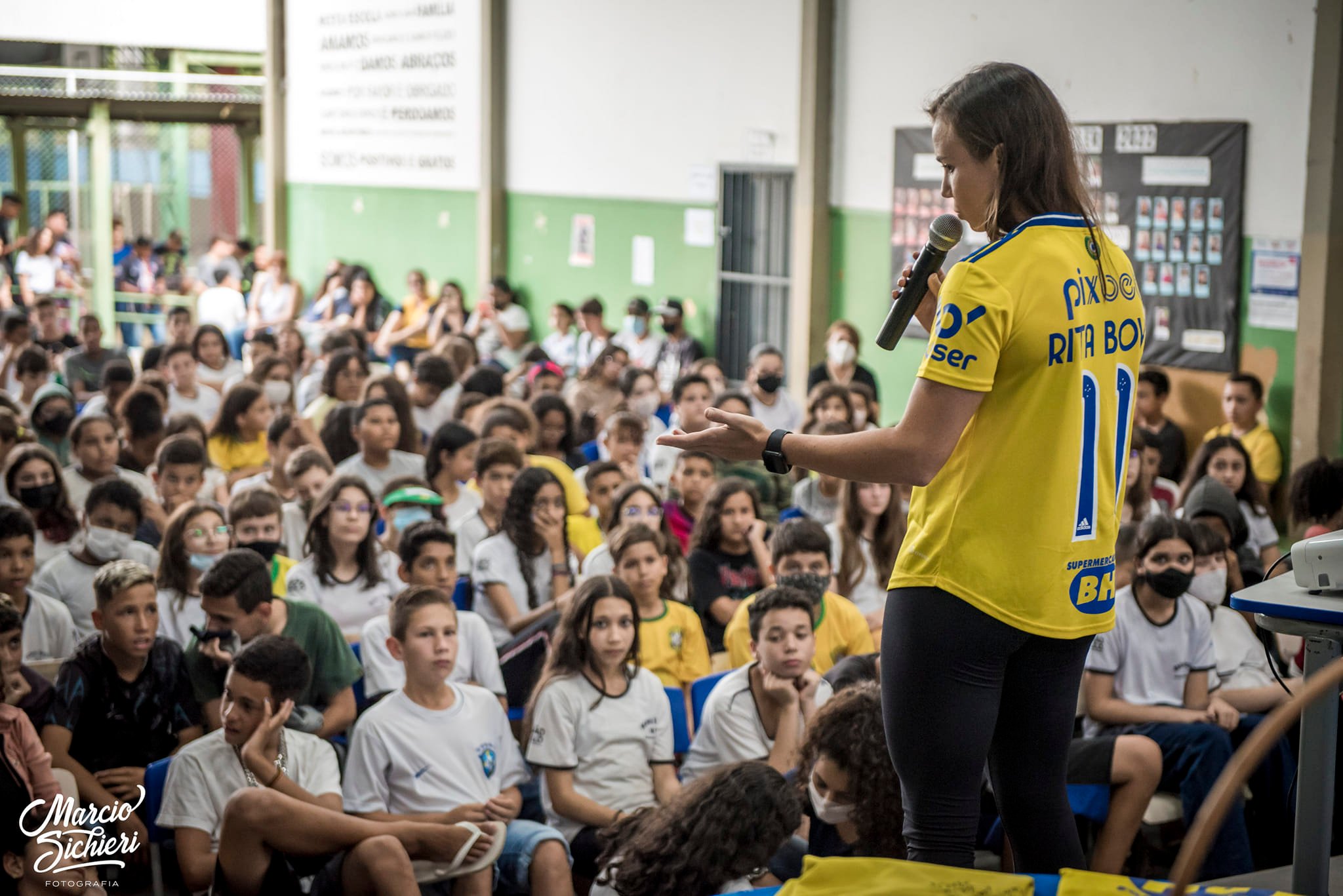 A meio-campista do elenco profissional feminino do Cruzeiro Esporte Clube de Minas Gerais, Rita Bove, de Flórida Paulista, participou na sexta-feira (2) de um bate-papo com estudantes da Escola Estadual Helen Keller, em Adamantina.