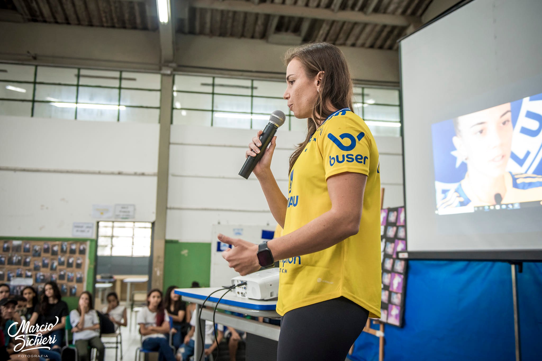 A ida da atleta profissional à Escola foi mediada pela professora Ana Luiza Cordeiro, responsável pela Sala de Leitura da unidade de ensino, onde desenvolve o que define como "Círculo de Fala Interativa", um espaço de bate-papo e trocas de informações com os estudantes.