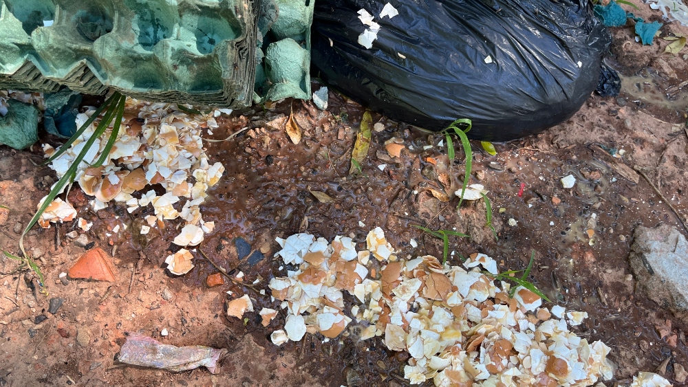Bandejas e restos de ovos são descartados irregularmente em estrada rural de Adamantina