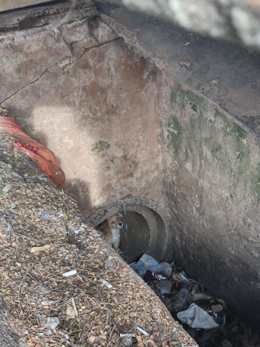 Uma equipe da prontidão foi mobiliada para atuar no resgate. De acordo com o 14º GB, a cadelinha “Mel” estava assustada e corria para o interior da galeria pluvial quando alguém se aproximava.