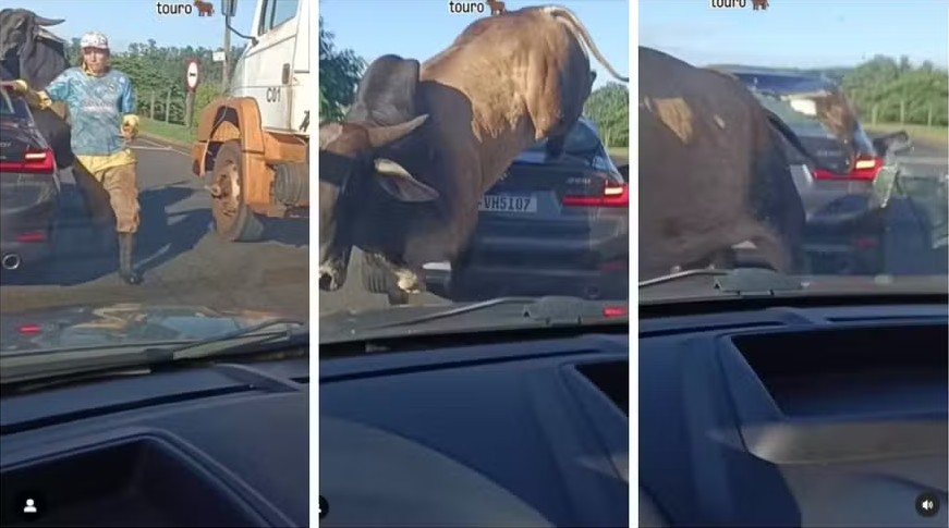 Em Ribeirão Preto, em abril deste ano, um touro solto perseguiu um pedestre e causou danos em dois carros, em uma avenida da cidade. O caso ganhou repercussão em todo o país.