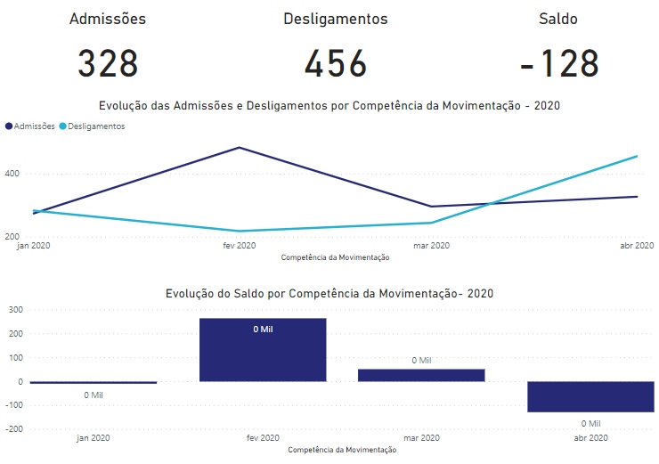 Para Adamantina, no período de janeiro a abril, o CAGED revela a ocorrência de 456 demissões e 328 contratações, o que gera um saldo negativo com 128 postos de trabalho a menos. É o primeiro indicador oficial que permite mensurar os reflexos da pandemia da Covid-19 e a retração da economia, nos empregos formais.