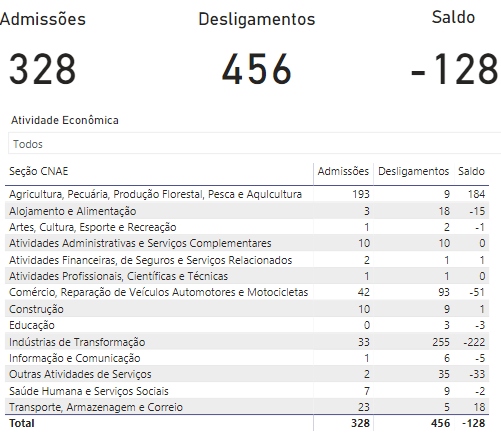 Na média final, o número de demissões (456) é maior do que as contratações (328), o que geram segundo o CAGED, o saldo negativo de menos 128 postos de trabalho na cidade. (Continua após a publicidade...)