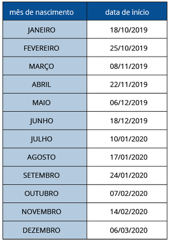 Para aqueles que não têm conta poupança na Caixa, aberta até o dia 24 de julho de 2019, o calendário começa no dia 18 de outubro, para os nascidos em janeiro, e vai até 6 de março de 2020, para os nascidos em dezembro.